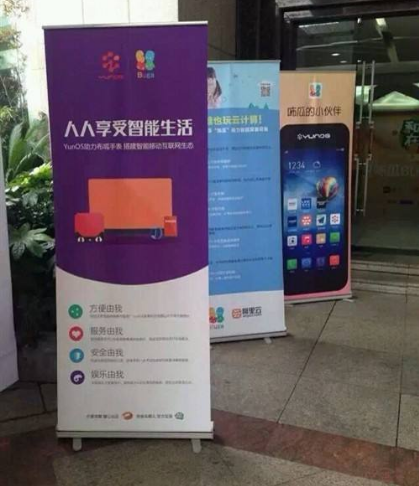 易拉寶或稱海報架、展示架,廣告行業(yè)內(nèi)也叫易拉架、易拉得、易拉卷等,是樹立式宣傳海報。常見于人流多的街頭通道,協(xié)助個體戶式的路演推銷活動,或是臨時攤位。易拉寶主要質(zhì)料是塑膠或鋁合金。易拉寶的替代品是街頭橫額、道旗、海報宣傳、貼紙等。